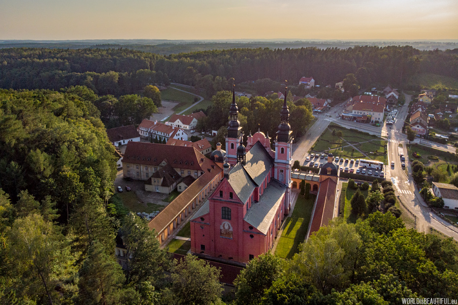 Barokowa bazylika z cudownym obrazem na Mazurach, miejsce pielgrzymek i koncertów organowych.