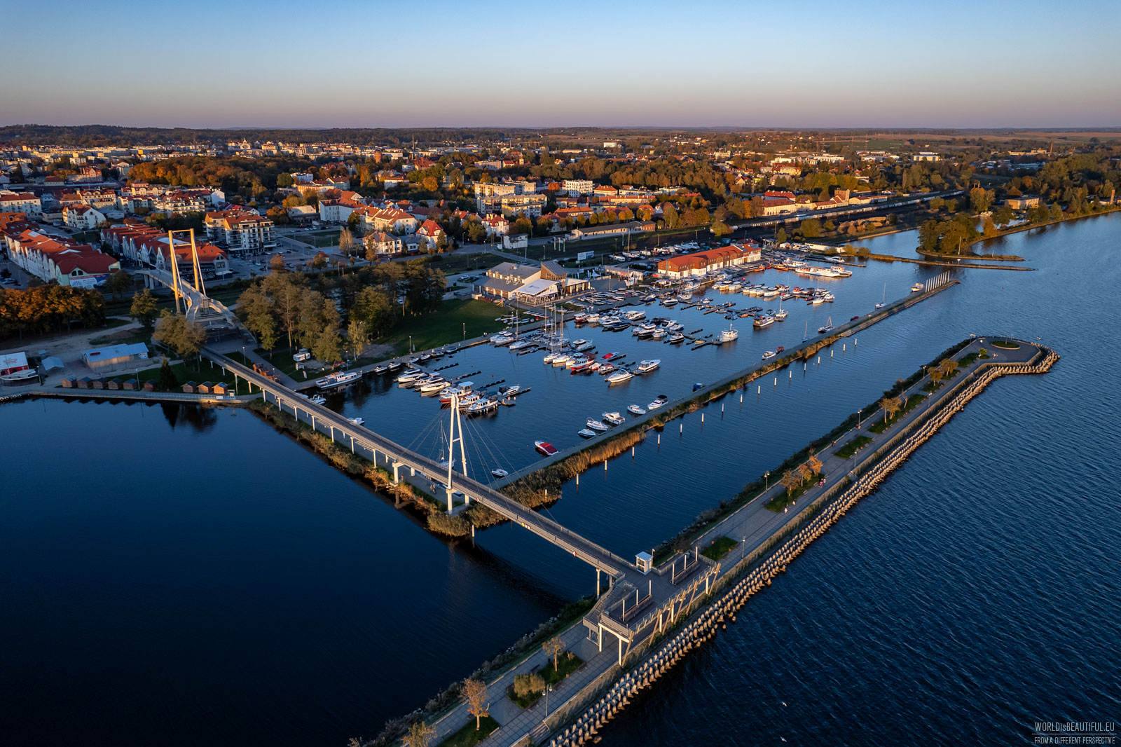 Nowoczesna marina z molo w Gizycku, idealna na spacery i podziwianie widoków.